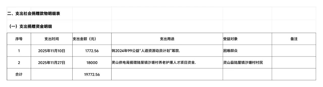 钦州市红十字会2025年11月支出社会捐赠款物信息公示